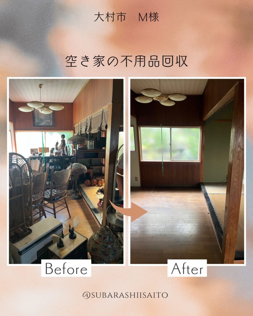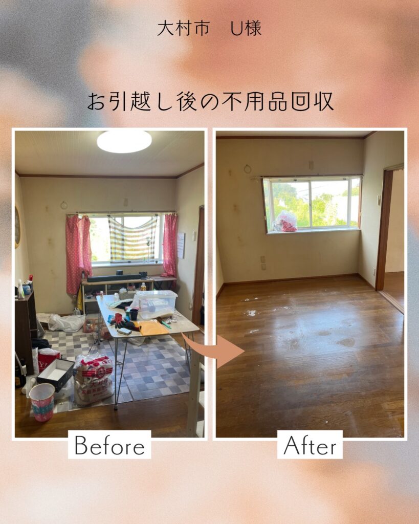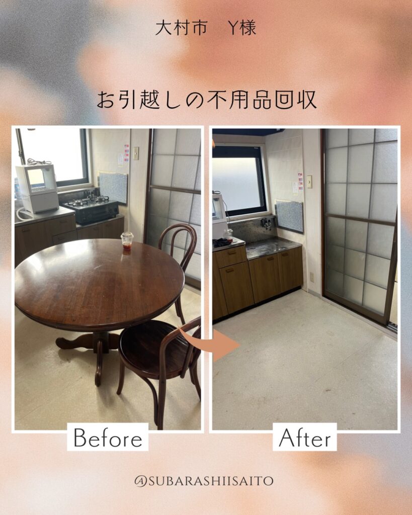 会社の転勤で長崎市から佐賀県に引っ越す事となり、引越しをきに物を減らそうと思い、トライアングルアイさんに不用品の処分をお願いしました。必要な物を先にお伝えし、それ以外は処分して下さいとお伝えしていたのですが、貴重品が出てきたり、必要そうな物が出てきた時は毎回、処分してよろしいですか?と声をかけて頂いて、何点かは引越し先にプラスで持っていく事にしました。仕事を途中中断してまで確認して頂き、親切で丁寧な方だなと感じました。また不用品の回収をお願いする時はトライアングルアイさんにお願いしたいです。本当にありがとうございました!